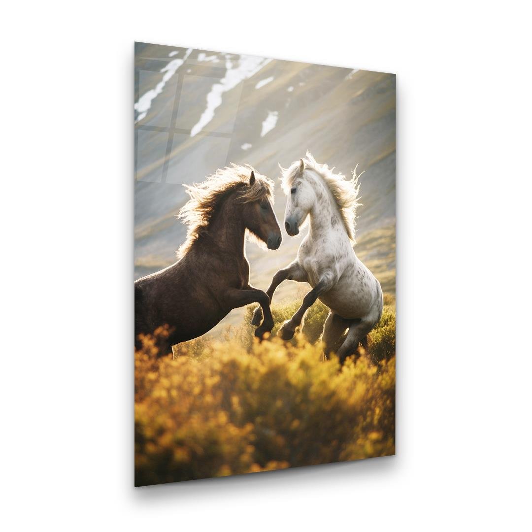 Atlar Dikey Cam Tablo-Glass Art Concept