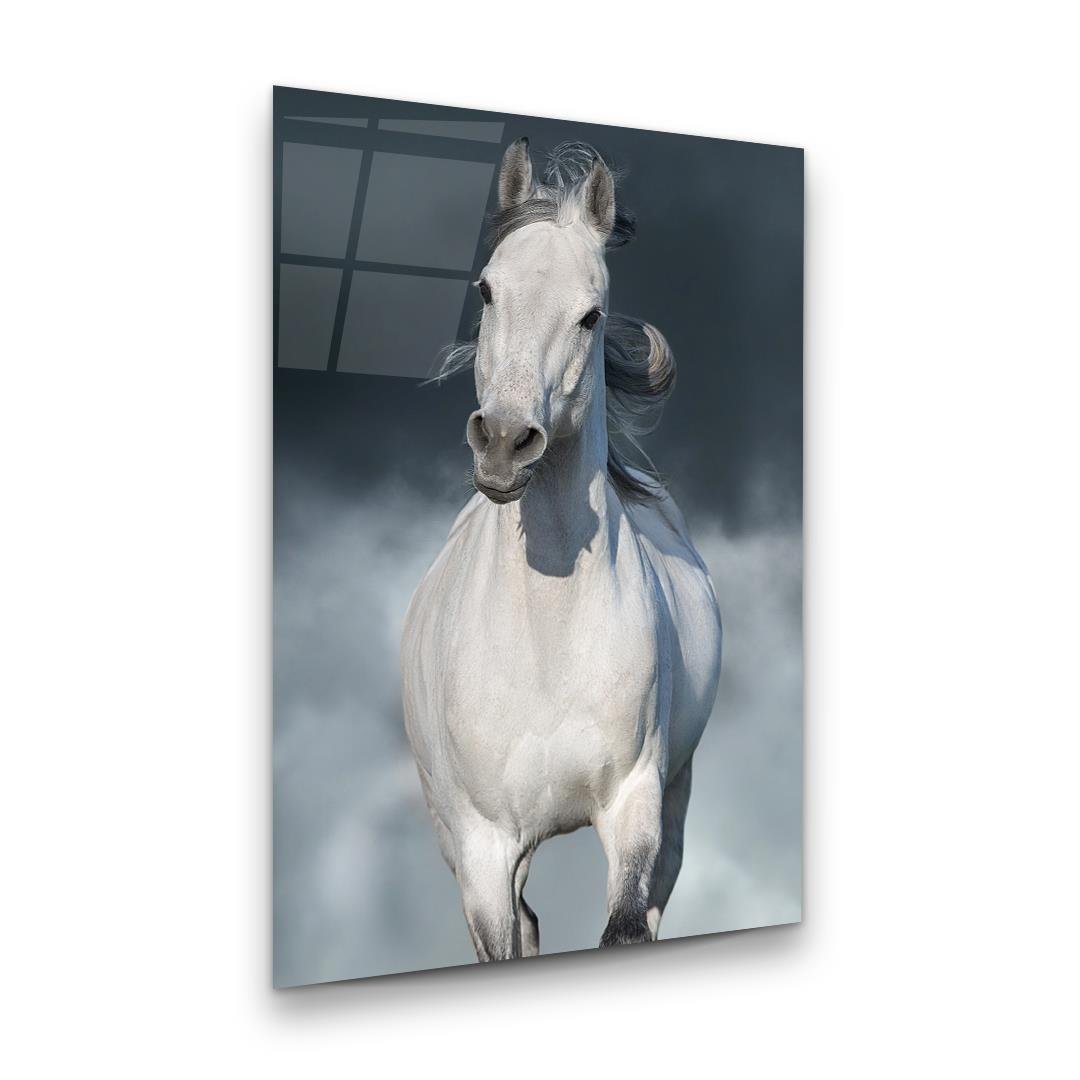 Beyaz At Dikey Cam Tablo-Glass Art Concept