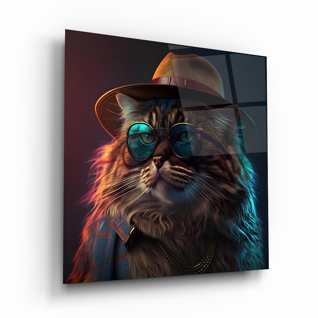Kedi Adam Kare Cam Tablo-Glass Art Concept