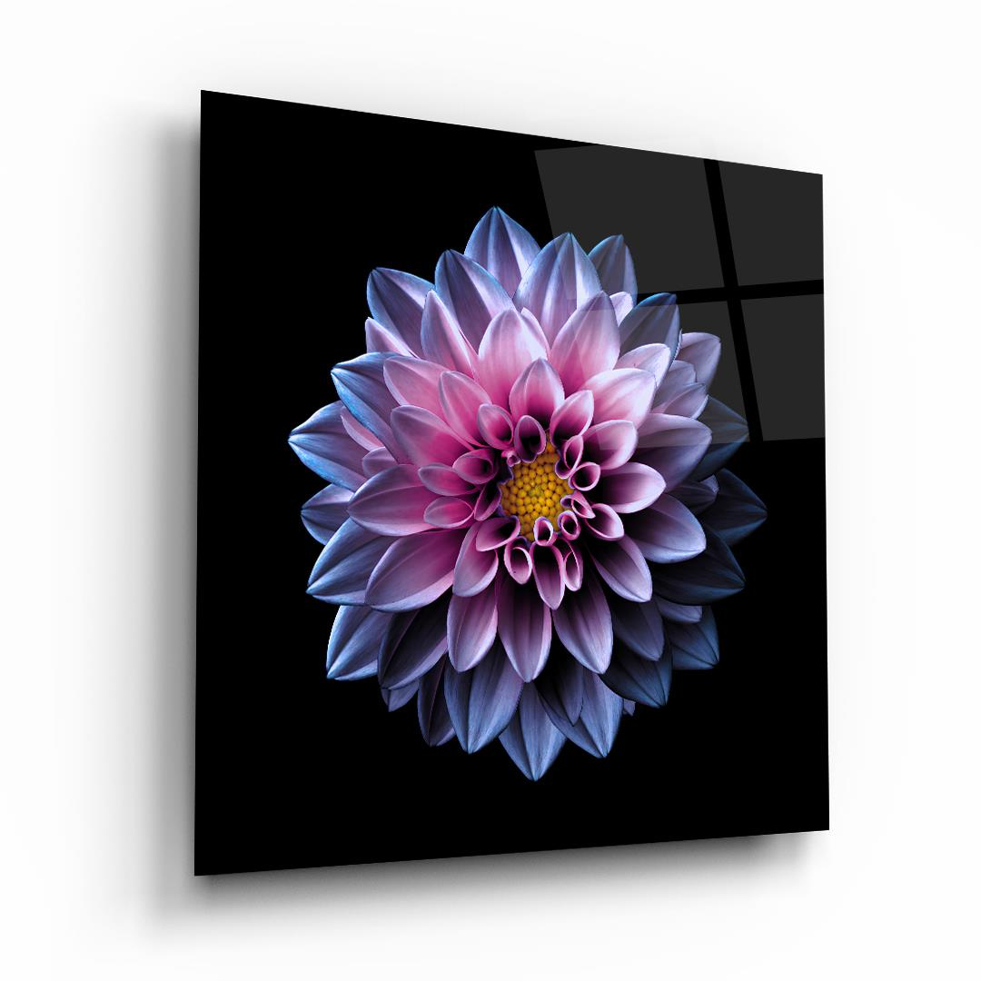 Mor Çiçek Kare Cam Tablo-Glass Art Concept