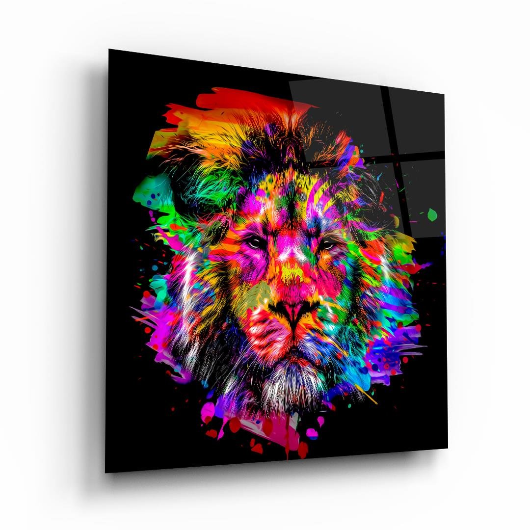 Renkli Aslan Kare Cam Tablo-Glass Art Concept