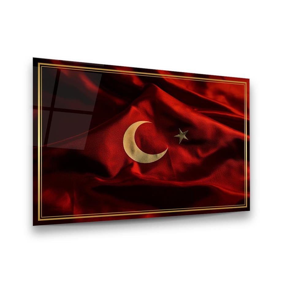 Türk Bayrağı Yatay Cam Tablo-Glass Art Concept
