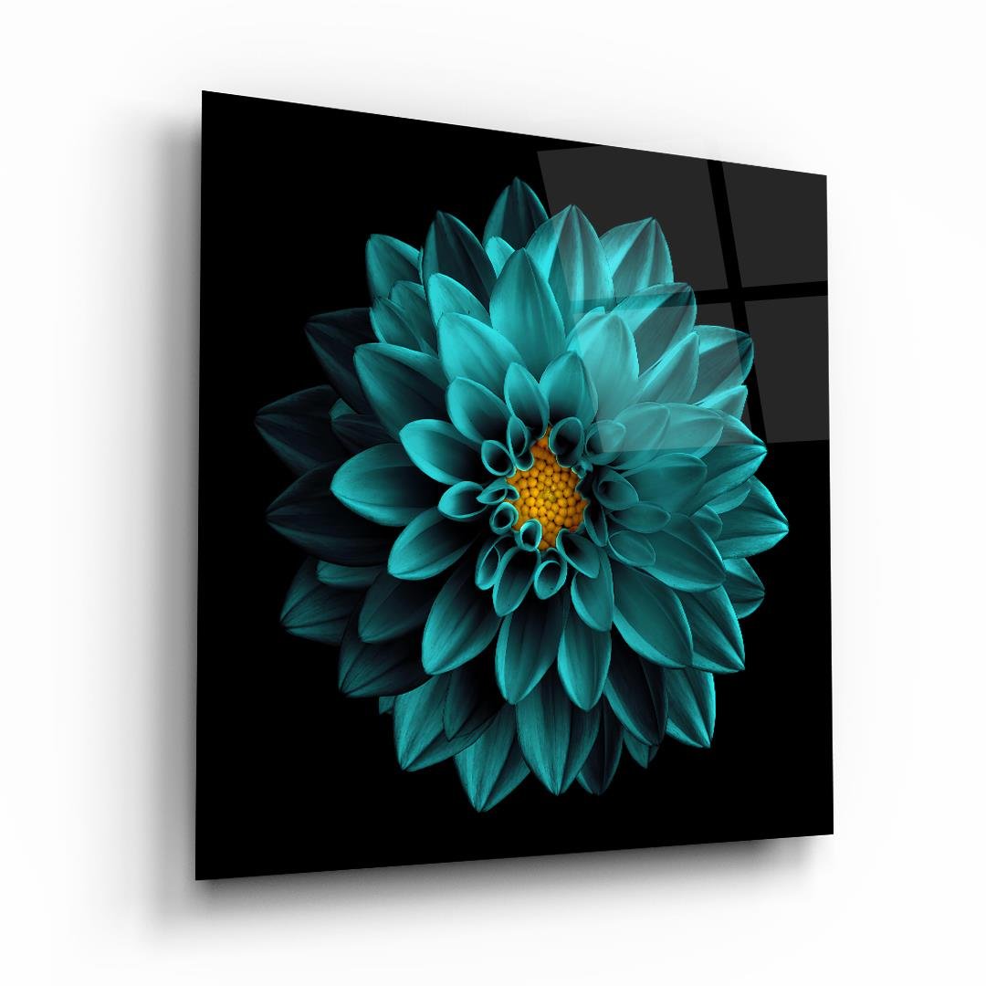 Yeşil Çiçek Kare Cam Tablo-Glass Art Concept